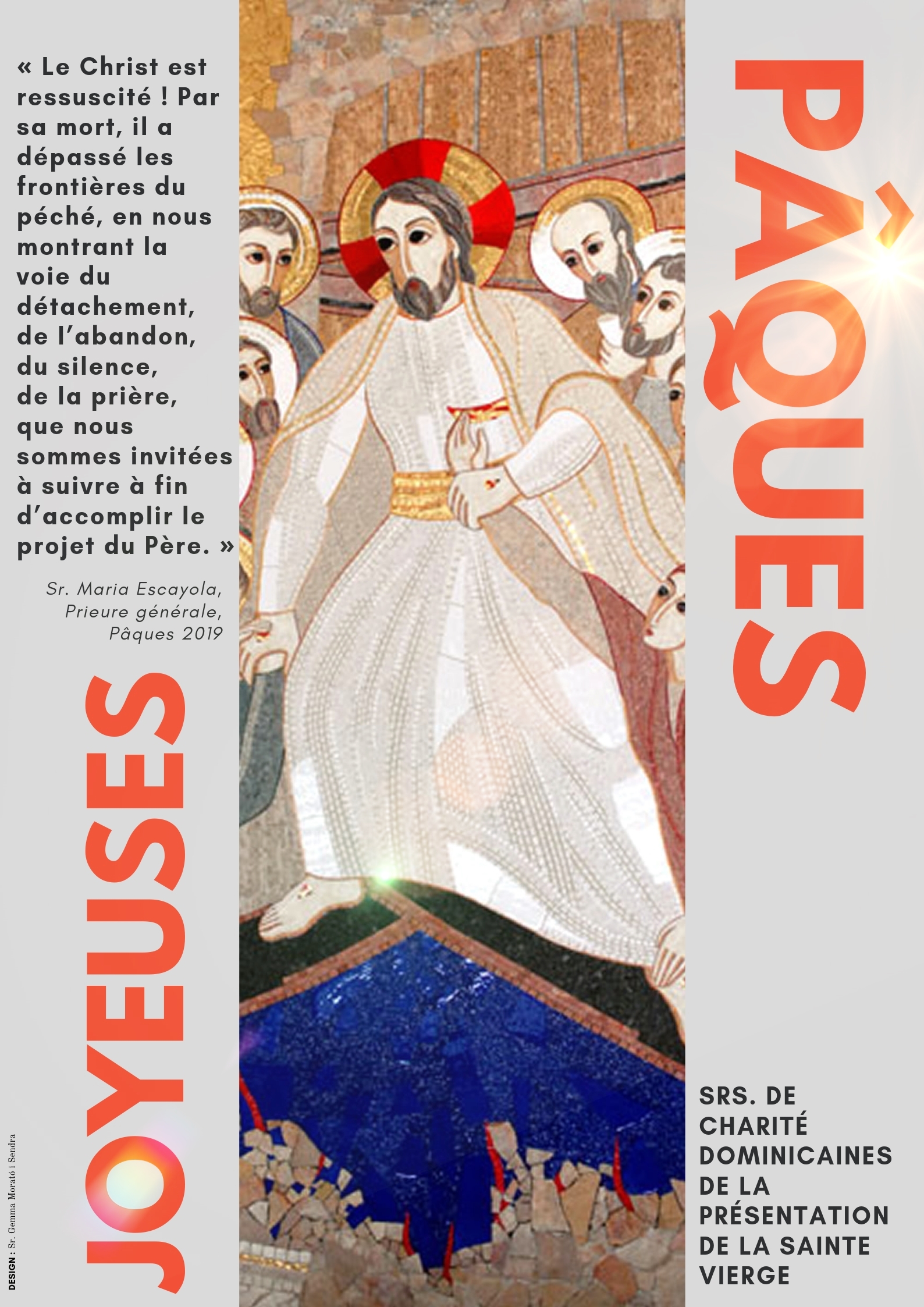 Barcelone (Espagne), 18/04/2019, Sr. Gemma Morató.- Nous vous offrons une affiche, prête à imprimer, pour célébrer la célébration de Pâques avec quelques mots de Sr. Maria Escayola, Prieure générale.